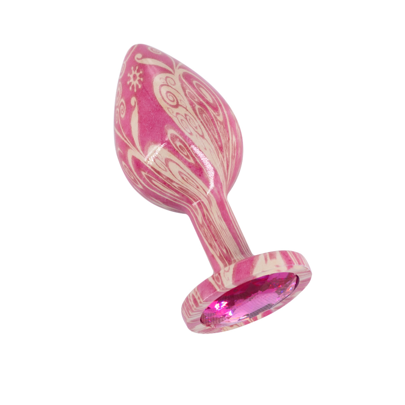 Выполнена пробка из алюминия в розовом цвете. Абсолютно гипоаллергенна! Не имеет швов, стыков. Отполирована до зеркального блеска