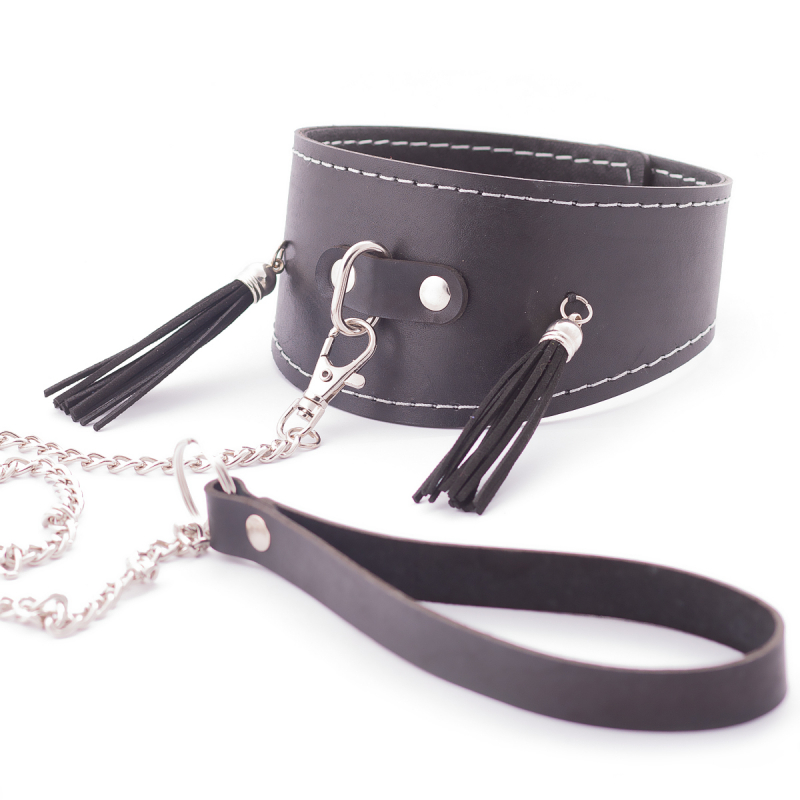 Невероятно стильный ошейник с декором из замшевых кисточек и металлическим поводком, - это, отличный БДСМ аксессуар для самых незабываемых сессий!