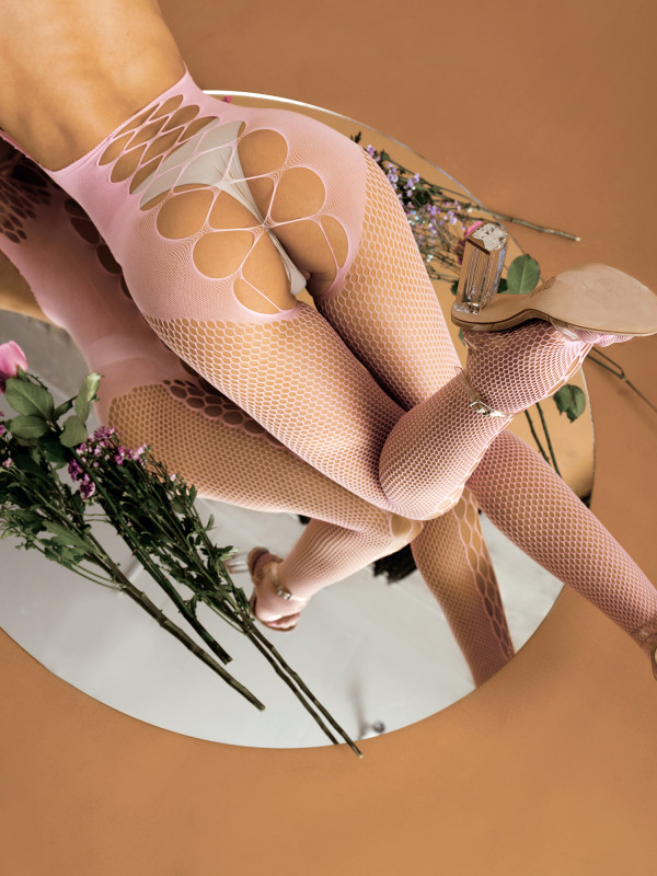 Ярко розовая бесшовная эластичная сетка гарантирует идеальную посадку, а фантазийная модель кетсьюта приводит в восторг!