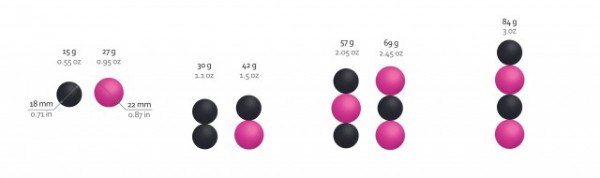 Набор "Geisha Balls Magnetic" включает в себя 4 магнитных шарика и специальную силиконовую петельку! Черные шарики имеют вес по 15г, розовые - по 27г.