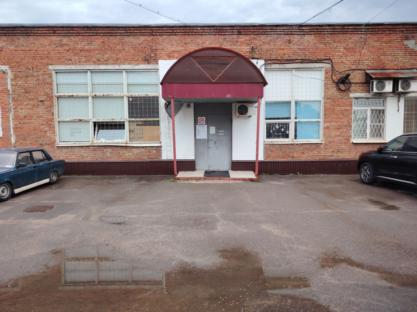 Вход с торца здания с надписью FАБРИКА , рядом с кофейным автоматом